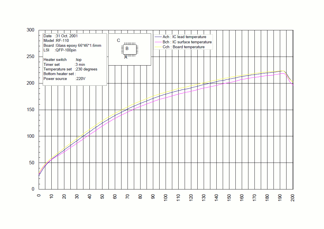 1ゾーンなのでプリヒート/リフローといった2段加熱はできません。